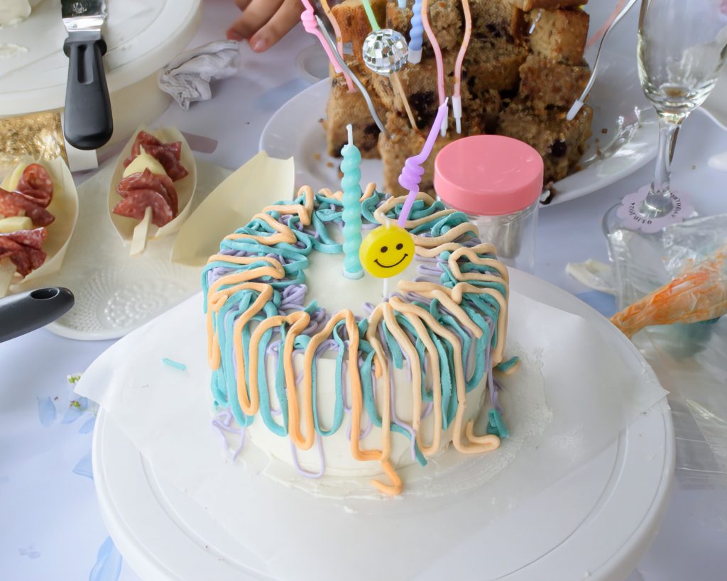La verdad, fue una experiencia tan linda como caótica: teníamos colores y buttercream por todos lados, muchas risas, y una mesa llena de tortas bonitas (y algunas muy graciosas).